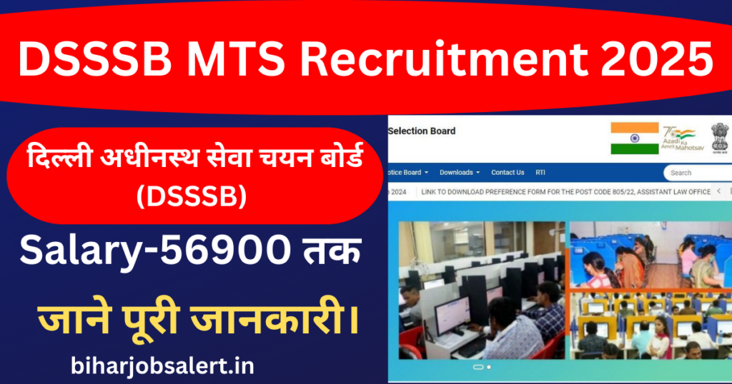 DSSSB MTS Recruitment 2025– दिल्ली में सरकारी नौकरी की तलाश कर रहें हैं। तो एक बहुत बरी अपडेट आया हुआ हैं। दिल्ली अधीनस्थ सेवा चयन बोर्ड (DSSSB) ने मल्टी टास्किंग स्टाफ (MTS) के पदों पर भर्ती के लिए एक नया नोटिफिकेशन जारी किया गया हैं। इसमें कुल पोस्टो की संख्यां 714 हैं।