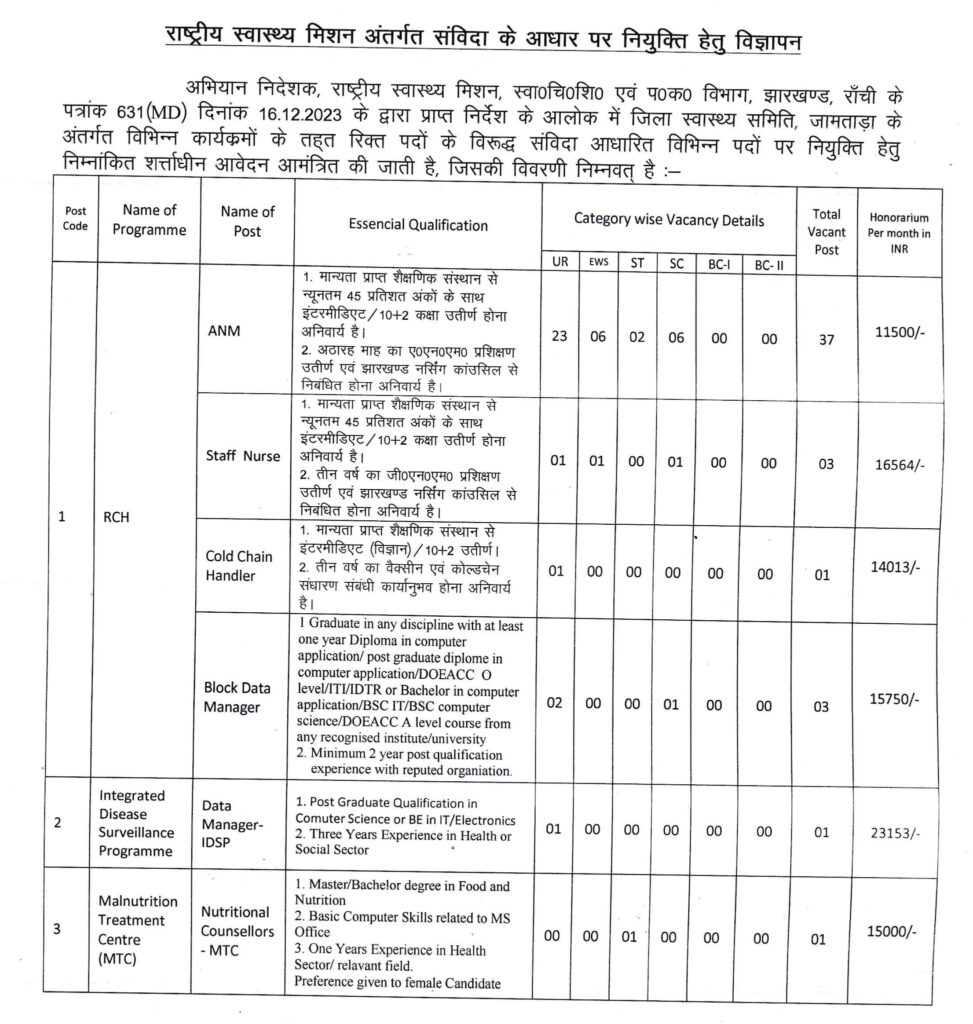 | Jharkhand Health Department | 86 | * अधिक जानकारी के लिए नोटिफिकेटिन को पढ़ें। निचे दिया गया हैं। 👇 |